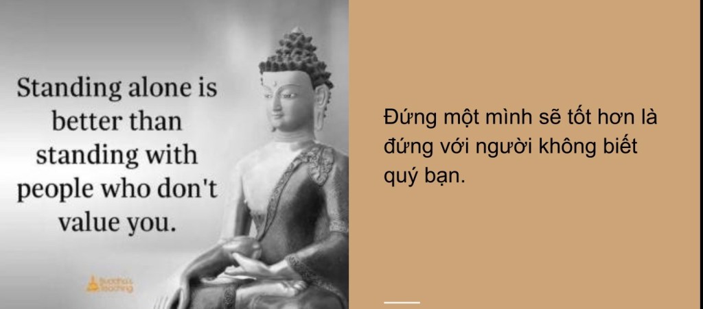 Daily Dharma July 30, 2020 Thà đứng riêng một mình, còn tốt hơn là đứng chung với những người làm mất phẩm giá của mình. Share this: Click to share on X (Opens in new window) X Click to share on Facebook (Opens in new window) Facebook Like Loading... Related