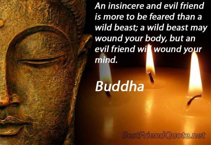 Sống gần một người bạn không chân thành và xấu ác còn đáng sợ hơn là ở gần với con thú dữ. Bởi thú dữ kia có thể làm tổn hại thân thể ta, còn một người bạn xấu ác thì có thể làm tổn thương đến cả cõi lòng ta.