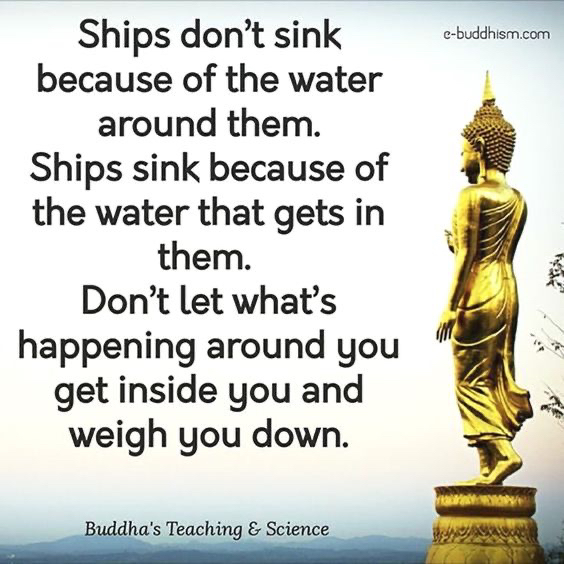 Con tàu không bị đắm chìm bởi đại dương mênh mông ở xung nó, mà con tàu chỉ bị nhận chìm khi sóng nước tràn ngập vào bên trong khoang thuyền. Cũng thế, đừng để những sự việc ở xung quanh tràn vào cõi lòng và nhấn chìm tâm tình của bạn nhé.