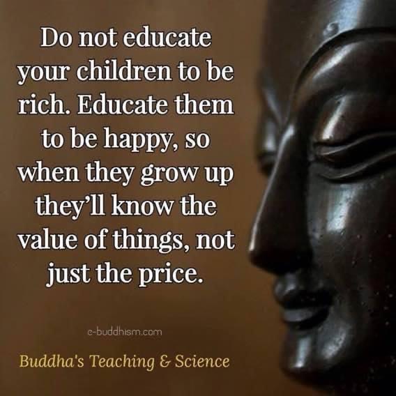 Đừng nên giáo dục con cái của chúng ta chỉ biết làm giàu, mà nên dạy cho các con làm thế nào để sống an lạc và hạnh phúc. Nhờ vậy, khi các con trưởng thành, chúng sẽ nhận chân được giá trị thực sự của cuộc sống, chứ không phải đánh giá mọi thứ đơn thuần bằng giá trị của đồng tiền hay vật chất.