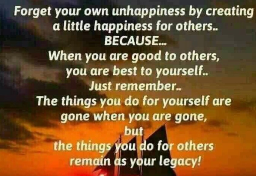 Nên nhớ, những điều ta chỉ làm cho chính mình thì nó sẽ biến mất sau khi ta không còn nữa, nhưng những gì ta làm cho người khác thì nó sẽ là những di sản mà ta để lại cho đời vậy.