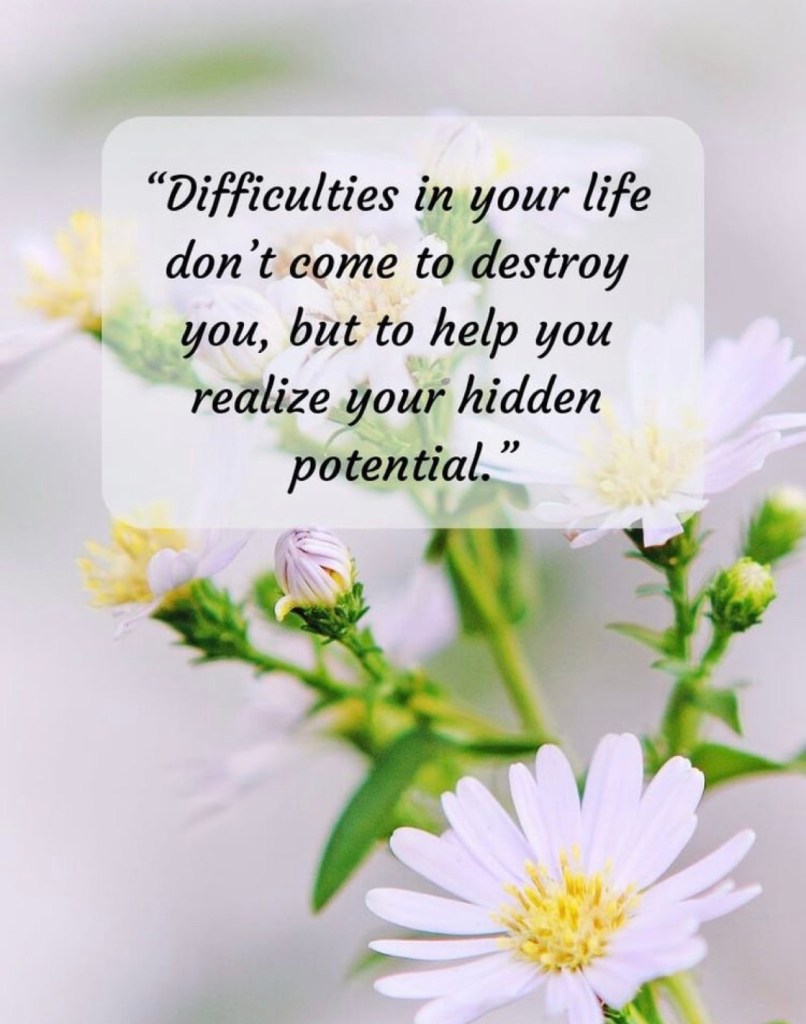 Những khó khăn trong đời sống không phải đến để hủy hoại cuộc đời bạn, mà chúng xảy ra để giúp bạn nhận ra và kích hoạt những tiềm năng có sẵn ở nơi mình.