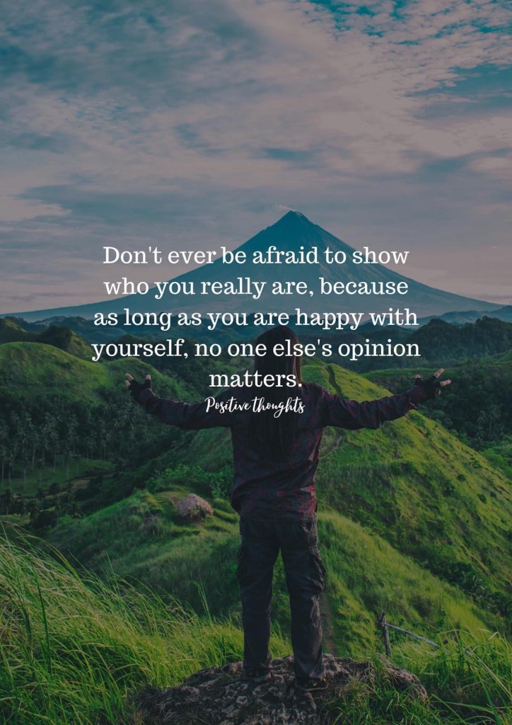 Không gì phải ngại khi để cho người khác nhìn thấy con người thật của mình. Bởi vì chỉ cần bạn vui và bằng lòng với con người thật của mình thì dù người khác có ý kiến hay có nói năng gì về mình cũng không sao cả.