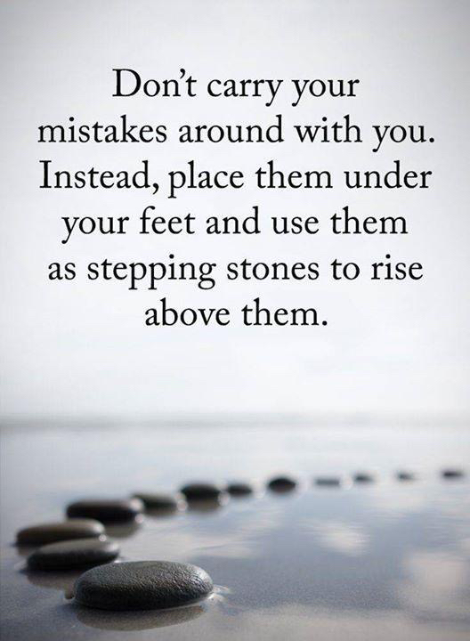 Đừng mãi luôn đeo đẳng những lỗi lầm của mình và mang đi khắp nơi. Thay vào đó, hãy đặt chúng dưới chân và dùng những kinh nghiệm sai lầm ấy như những thềm đá để bước trên nó mà đi qua.