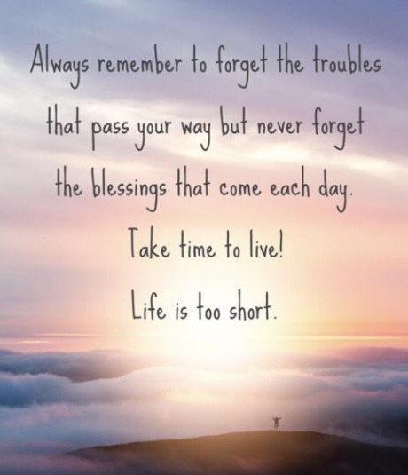 Luôn nhắc nhở bản thân hãy quên đi những rắc rối mà bạn gặp phải trên đường đời, nhưng đừng bao giờ quên phước lành và sự may mắn mà bạn có mỗi ngày.