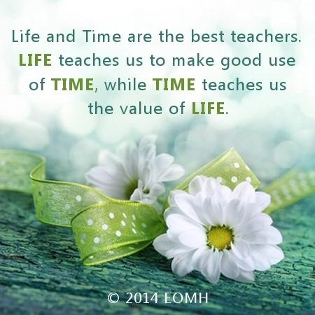 Cuộc sống dạy chúng ta biết sử dụng thời gian làm sao cho hợp lý và khôn ngoan. Trong khi đó, thời gian dạy chúng ta hiểu được giá trị của cuộc sống, sống sao cho xứng đáng.