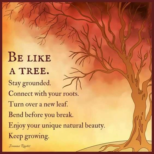 Luôn đứng vững và gắn kết với gốc rễ của mình.Chấp nhận sự đổi thay như cây thường thay lá. Nghiêng mình trước khi thực sự gãy đổ. Tán thưởng vẻ đẹp tự nhiên và khác biệt của bản thân. Cứ như thế chúng ta sống một đời thật đẹp.