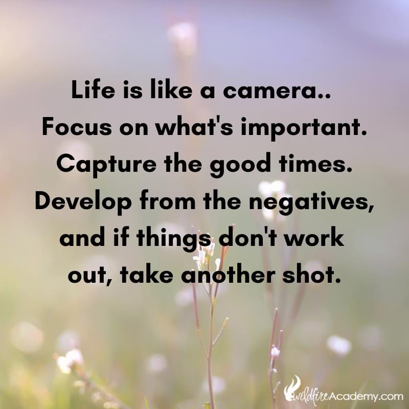 Phải biết tập trung vào những điểm quan trọng, nắm bắt những khoảnh khắc đẹp, khai phát từ những điều tiêu cực, và nếu mọi thứ vẫn không diễn ra như ý thì hãy chụp lại một cái khác vậy.