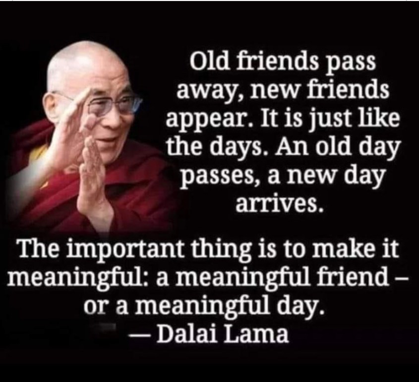 Một người bạn cũ ra đi thì một người bạn mới lại đến. Nó cũng giống như ngày cũ đi qua thì ngày mới lại đến. Điều quan trọng là làm sao cho những điều ấy trở nên có ý nghĩa, một người bạn biết cảm thông hoặc một ngày thật ý nghĩa.