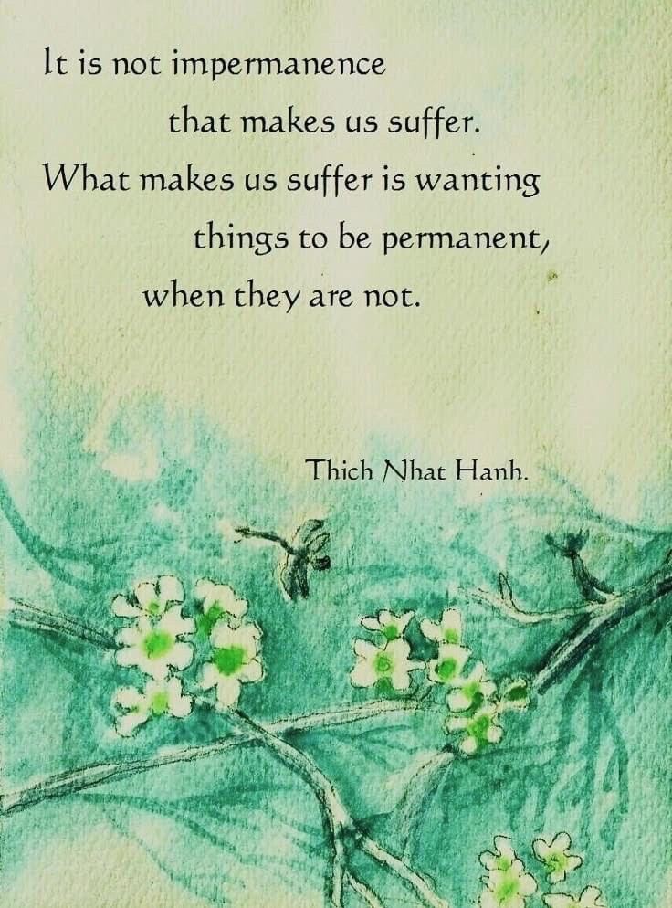 Daily Dharma November 2, 2022 Không phải vô thường làm cho chúng ta đau khổ. Điều làm chúng ta khổ đau chính là ước muốn mọi thứ thường hằng trong khi bản chất của chúng là vô thường sanh diệt. Share this: Click to share on X (Opens in new window) X Click to share on Facebook (Opens in new window) Facebook Like Loading... Related
