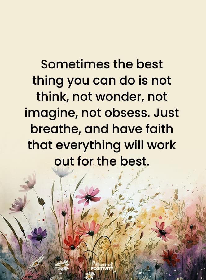 Daily Dharma May 12, 2023 Đôi khi điều tốt nhất bạn có thể làm là ngừng suy nghĩ, không thắc mắc, đừng tưởng tượng, cũng chớ chấp chặt bám víu. Bấy giờ, bạn chỉ cần hít thở và có lòng tin rằng mọi thứ rồi cũng sẽ tốt đẹp thôi. Share this: Click to share on X (Opens in new window) X Click to share on Facebook (Opens in new window) Facebook Like Loading... Related