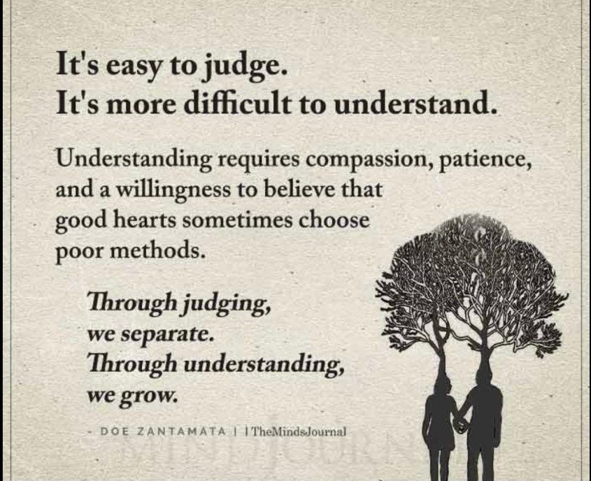 Vì vậy dùng cách phán xét, chúng ta sẽ tách biệt. Nhưng thông qua sự hiểu biết, chúng ta cùng lớn lên.