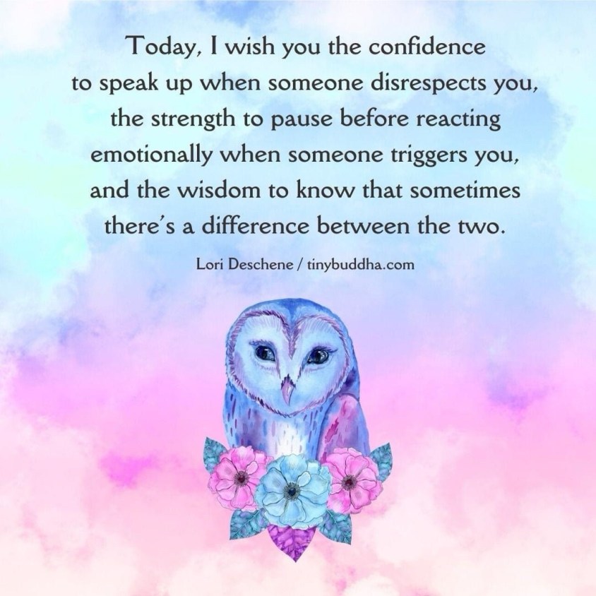 Daily Dharma September 24, 2024 Hôm nay, tôi chúc bạn có đủ tự tin để lên tiếng khi ai đó thiếu tôn trọng bạn, đủ sức mạnh để tạm dừng trước khi phản ứng theo cảm xúc khi ai đó khơi dậy nỗi tức giận của bạn, và sự khôn ngoan để nhận ra rằng đôi khi có sự khác biệt giữa hai điều đó. Share this: Click to share on X (Opens in new window) X Click to share on Facebook (Opens in new window) Facebook Like Loading... Related