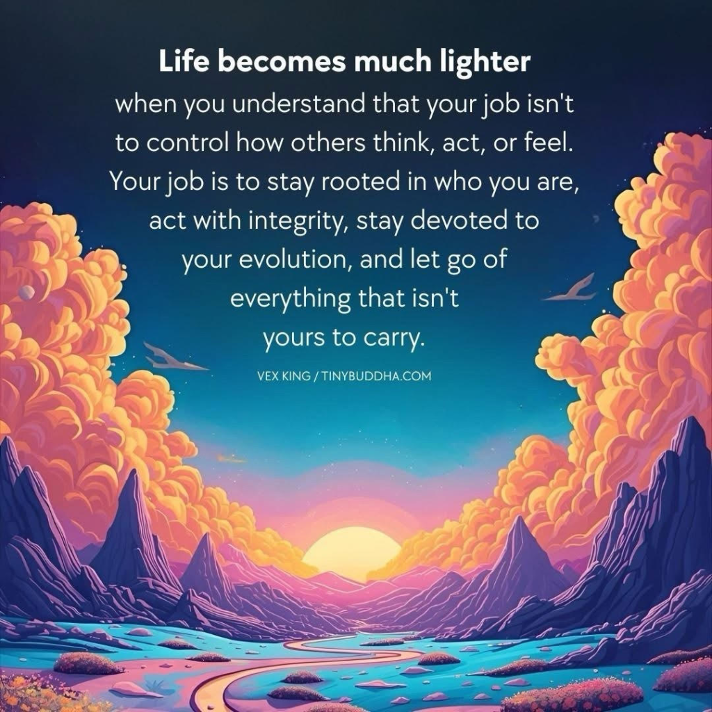 Cuộc sống trở nên nhẹ nhàng hơn rất nhiều khi bạn hiểu rằng nhiệm vụ của mình không phải là kiểm soát cách người khác nghĩ thế nào, hành động hay cảm xúc ra sao.